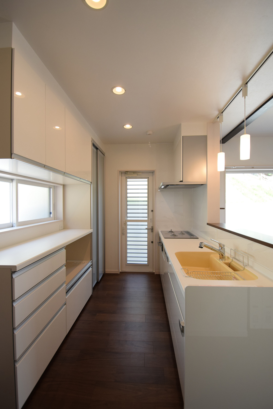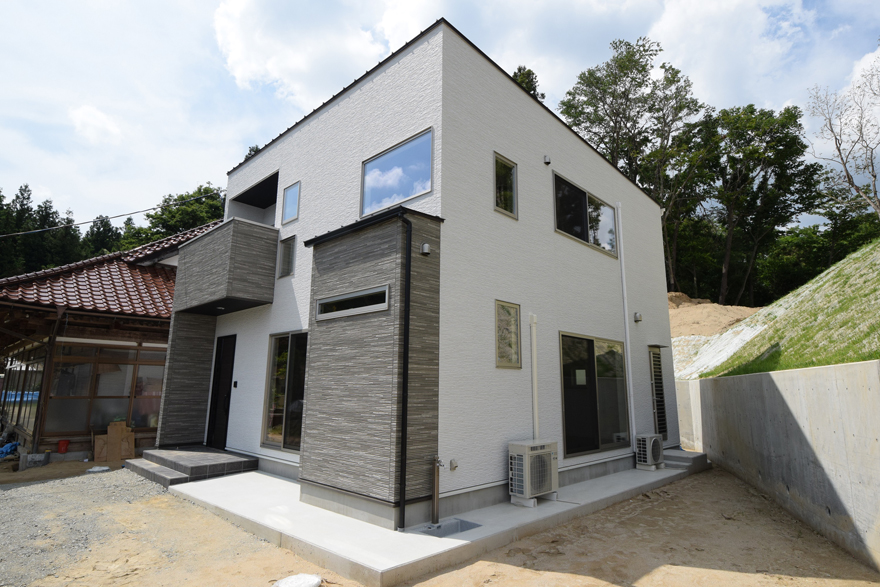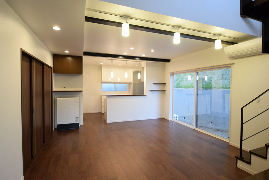 ご実家の隣に建てられた住宅です。敷地が狭かったため山を削り、